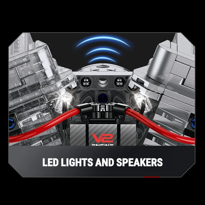 Feel the pulse of pure power. The Motorised V2 Bike Engine, captures the spirit of motorcycle performance in motion, a 30cm-long, fully remote-controlled showcase built from over 800 pieces.