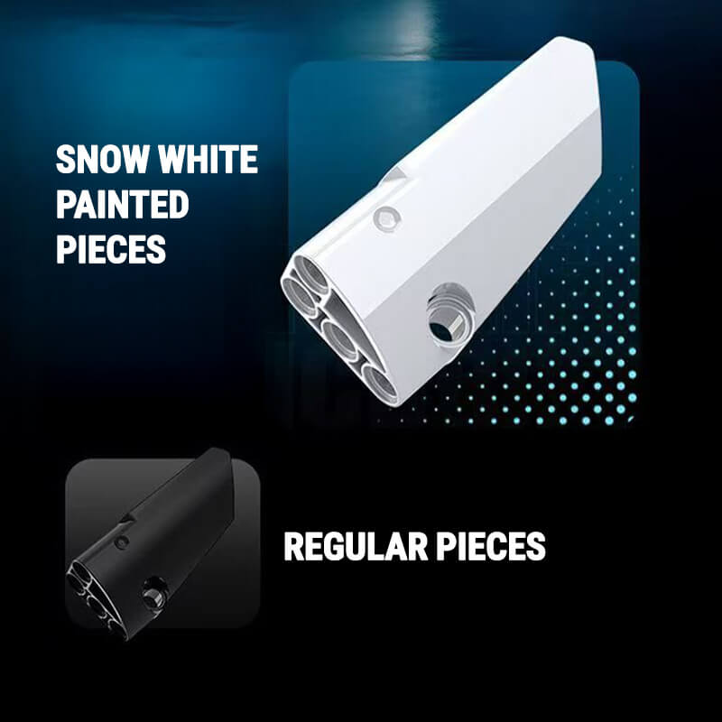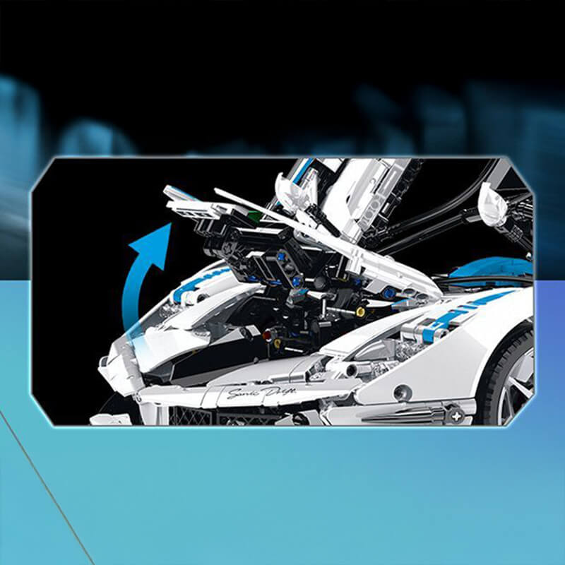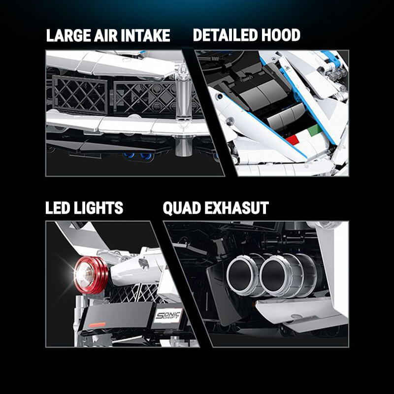 Finished in snow white painted pieces, this model radiates elegance and aggression in equal measure. Beneath its sculpted body lies a functioning V12 engine with rotating pistons, connected to a fully developed drivetrain, independent suspension system and adjustable ride height for total mechanical realism.
