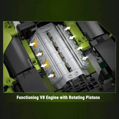 Dive into the engineering marvel of its functioning V8 engine with rotating pistons, enhanced by remote-controlled drive and steering capabilities, which bring this model to life right at your fingertips.