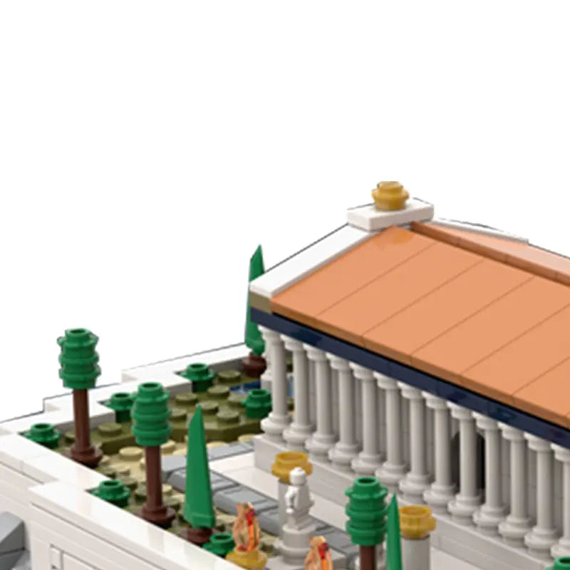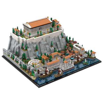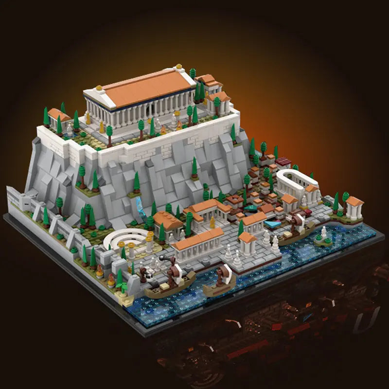 An incredibly accurate design of the Greek Acropolis, complete with upper & lower gardens, a full amphitheatre and even trade boats on the coast.