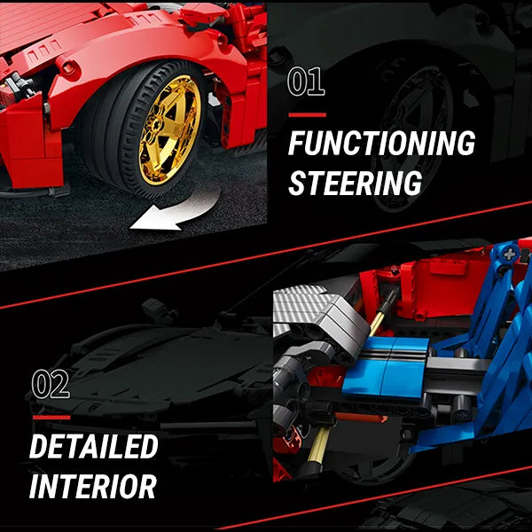 Our half meter long model translates these unique design features into a scale model full of detail both inside and out. Underneath its sculpted body &striking rear end is a detailed transmission& engine bay as well as a detailed interior with contrasting blue sport seats.