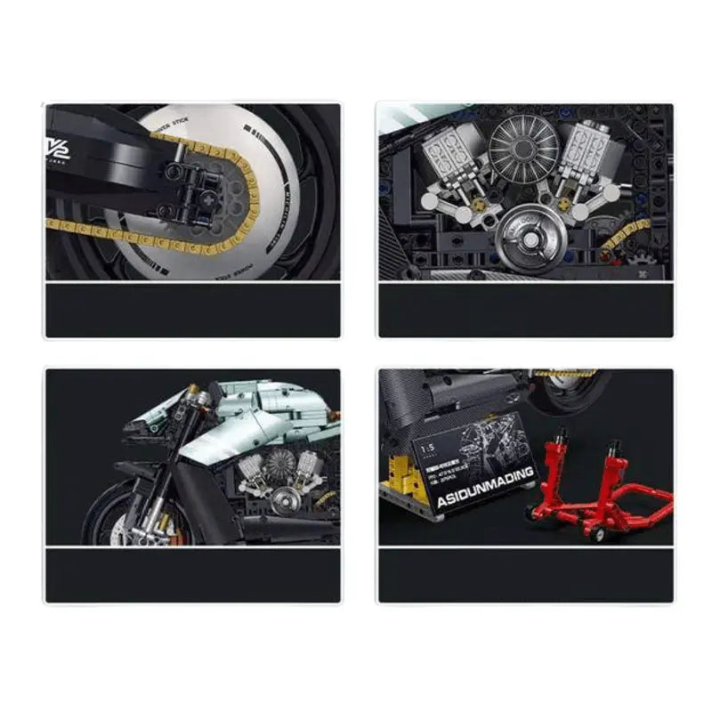 With more than 2100 pieces, it features a detailed engine and drivetrain, a complete brake kit, and a functional kickstand and wheel stand for dynamic display. Enhanced by a display plaque, this model offers both a challenging build and a stunning showcase piece, perfect for enthusiasts who appreciate the intricacy and beauty of motorcycle engineering.