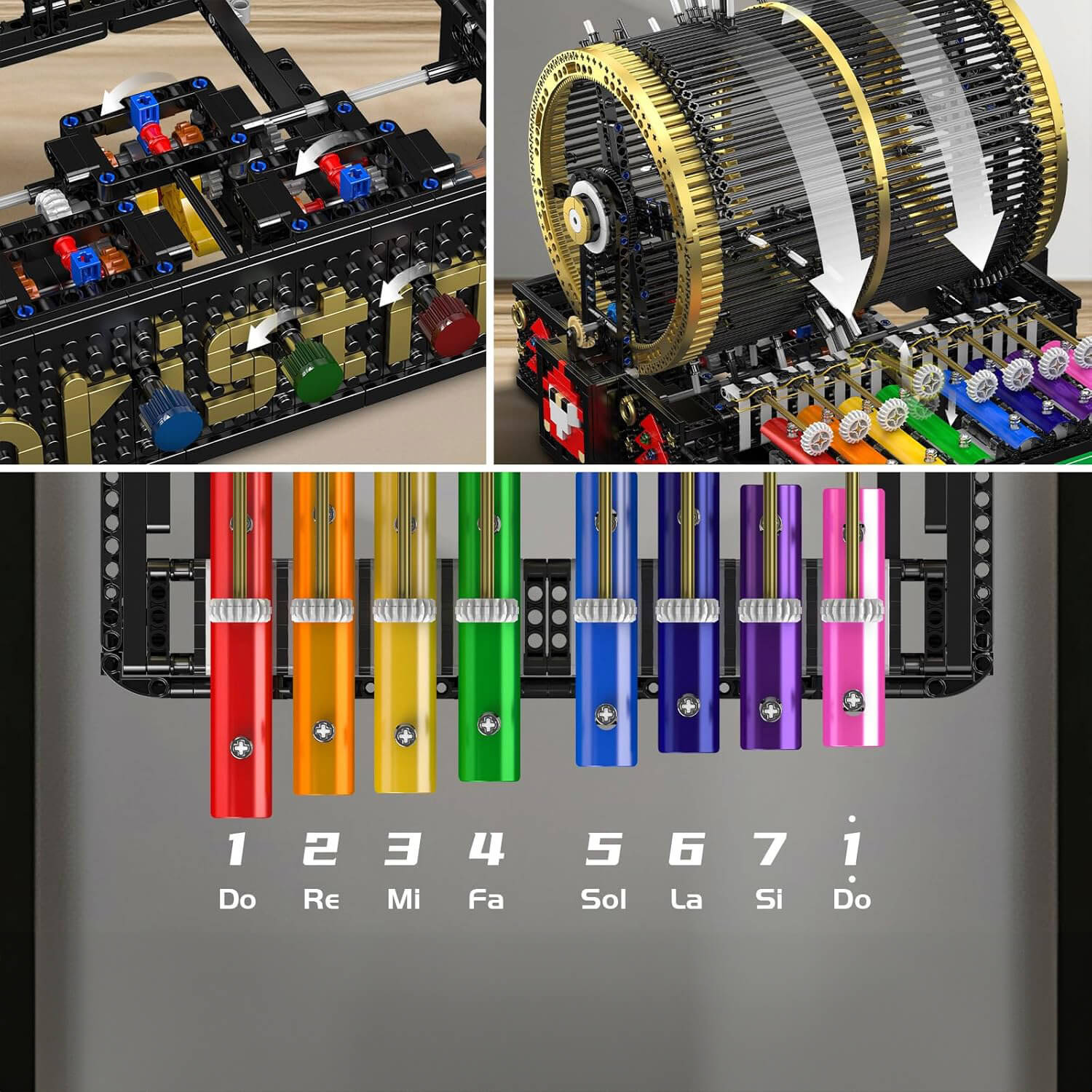 Driven by a precise gear system, this model features a rotating tone wheel, working sound hammers and a full Do-Re-Mi musical scale, all motorised for seamless operation.