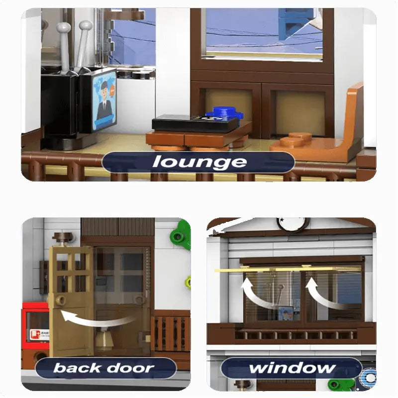 The opening roof canopy and sliding Japanese doors add authenticity, making this creation a delightful addition to any collection and an ideal starting point for your own inspired designs. Immerse yourself in the charm and authenticity of Japanese culture with this enchanting Japanese Grocery Store, where every detail celebrates the artistry of Japan.