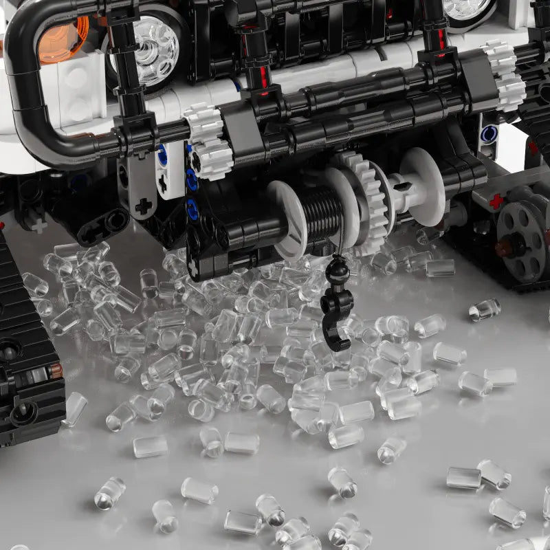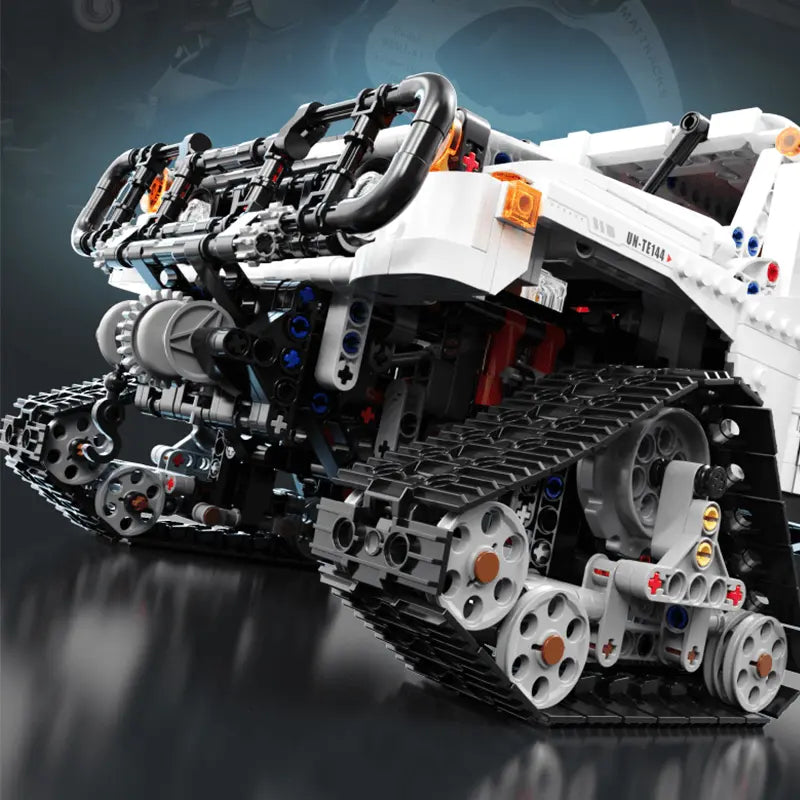 Comprising over 3000 pieces, thismodel mirrors the rugged features of the original while offering an inventive take on mobility. Built to an impressive 1:10 scale and measuring over 40cm in length, it commands attention with its imposing presence. The vehicle is equipped with remote-controlled drive and steering, empowering you to navigate the most challenging terrains with ease.