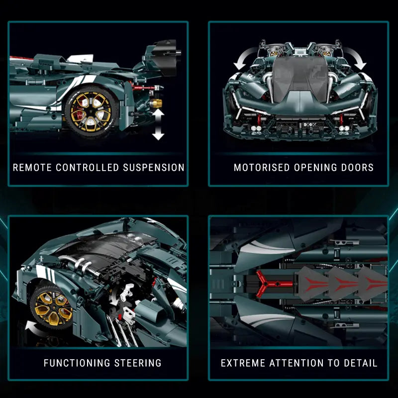 This extraordinary 1:8 scale model mirrors the car's distinctive features with over 3400 pieces, providing an intricate and captivating building experience. The electroplated frosted paint captures its elegance, while the model's custom wheels and intricate details, such as the fully detailed engine bay with moving pistons and active aerodynamic elements, pay homage to the car's unparalleled performance.