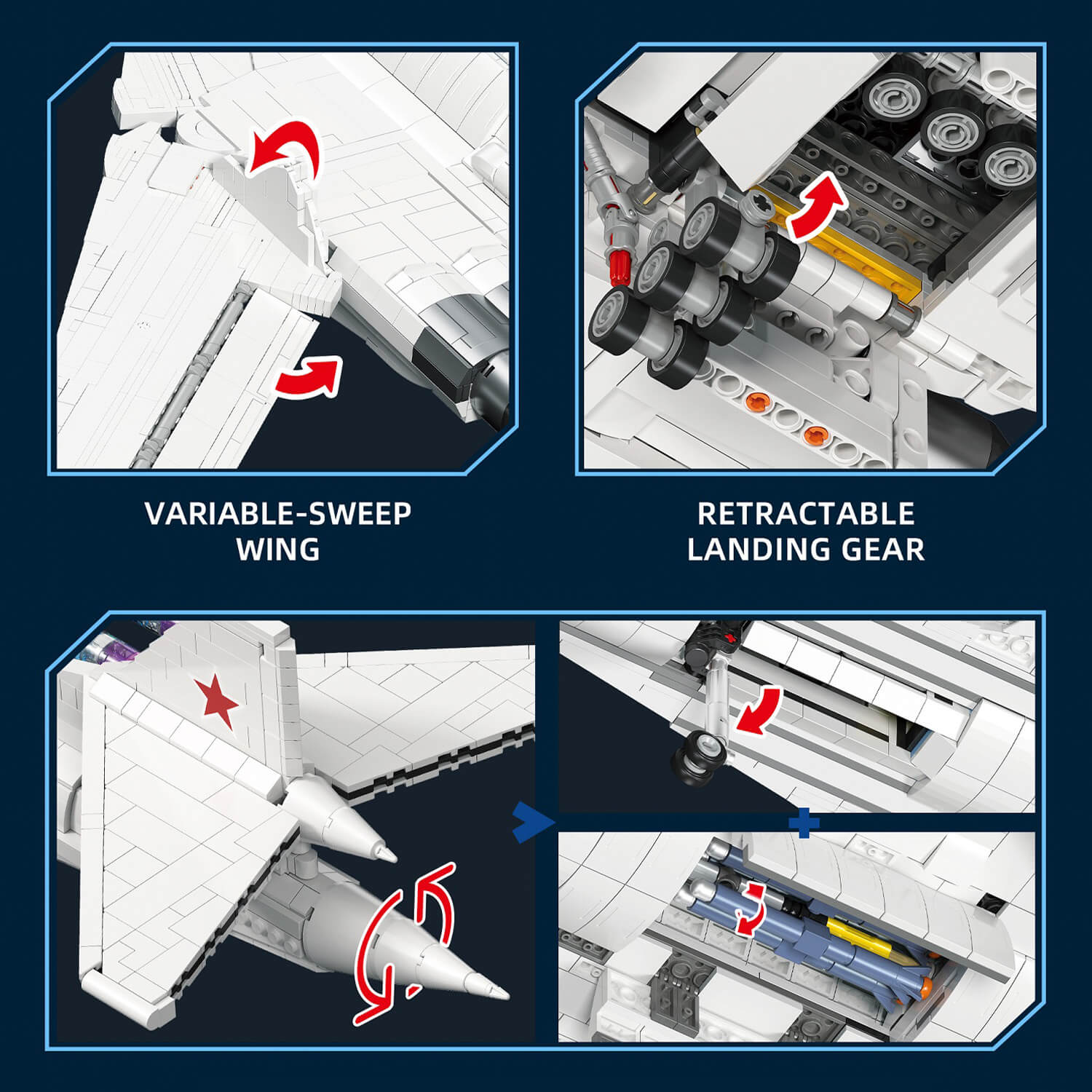 This engineering marvel features variable-sweep wings that transition smoothly between flight configurations, retractable landing gear and moving ailerons for authentic mechanical realism.