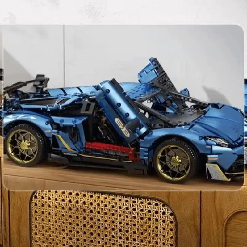 Comprising over 3800 pieces, this scale modelis a testament to the art of engineering. Stretching over 60cm in length, it boasts a commanding presence that mirrors the original. The stunning satin blue panels exude elegance, complemented by the opulence of gold wheels that accentuate its beauty.