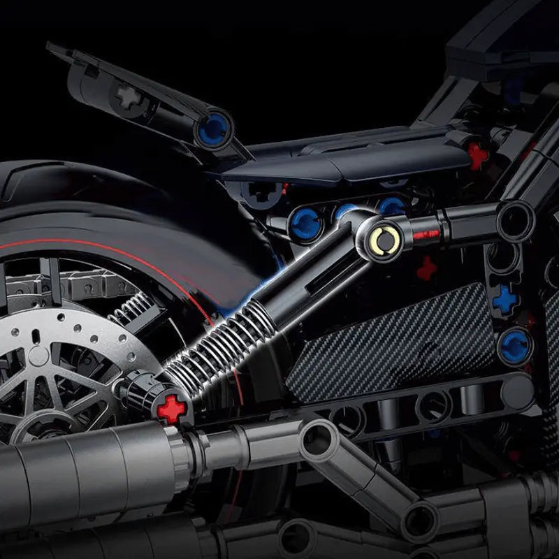 Unlock the petrolhead within and start assembling the detailed engine with rotating pistons that mimic the dynamics of a real-life motorcycle engine. Explore the drivetrain, which clicks into place, promising to be not just a realistic chopper, but a feature-packed model.