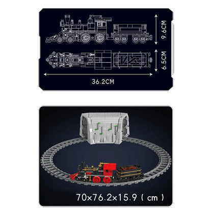 Assemble the model's goods wagon, attach it to the locomotive, and set up the 220cm round track, complete with a tunnel, to recreate authentic railroad scenes. The model also features a detachable locomotive top and a detailed cab, allowing for a glimpse into the elements of an 1860s locomotive.
