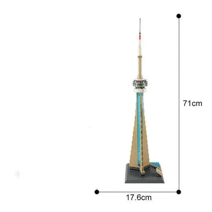 The CN Tower is a concrete communications and observation tower in downtown Toronto Canada and stands at 1,815 feet (553 m). When it was completed in 1976 it was the world’s tallest free-standing structure. The CN Tower is a symbol of Canadian achievement and in 1995 it was declared one of the modern Seven Wonders of the World by the American Society of Civil Engineers. Our iteration stands at over 70cm tall, making it the tallest building block model available anywhere. Parcel includes a full part pack and instruction manual.