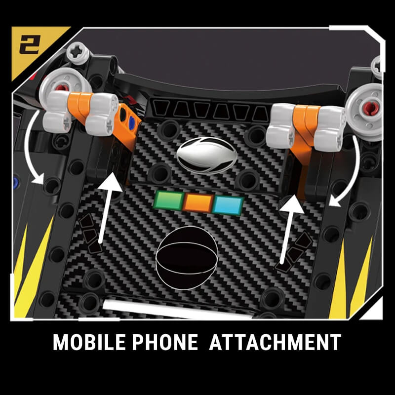 The mobile phone mount slot adds a modern interactive touch, perfect for simulated telemetry or display integration.