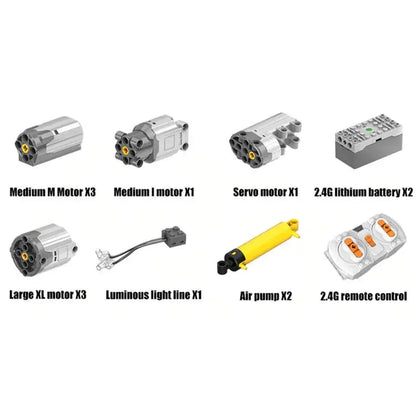 A complex combination of electric and pneumatic (yes, pneumatic) mechanisms give this model insane remote controlled capability. This model comes complete with a pneumatic crane arm, electric extending outriggers and even rear wheel steering. Its 3 High Torque XL Motors allow you to transport up to 4kg from place to place.